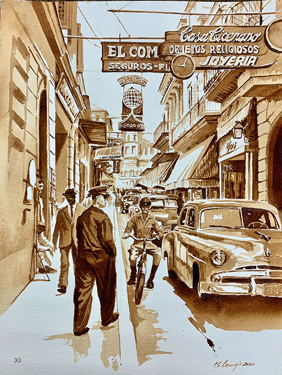 Luis Enrique Camejo is a man of romance and I do not mean that in the most erotic and sensual sense of the word, but I perceive him as an artist who brings back to us the heartbeat of the city, of man and, of course, of the world through his watercolors.