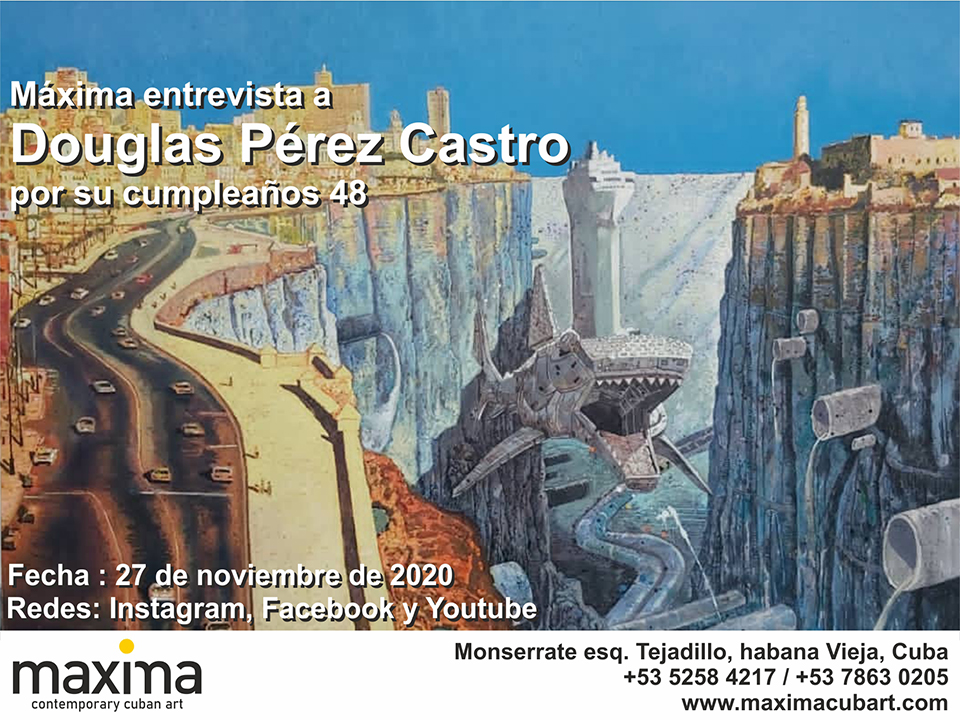 This is not the first time Maxima interviews Douglas Perez Castro, nor will it be the last. We still have many conversations to decipher or at least understand the creative ethos of the artist. And one of those opportunities will be next Friday, November 27, starting at 10:00 a.m., just on his 48th birthday.
