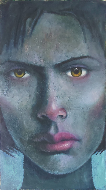 Untitled is a work from the catalog of Máxima Estudio-Taller made in oil on canvas in 2017, with 180 x 100 cm in dimension. A challenging figure for the human intellect because of its morphology, due to the fact that at first glance it is difficult to identify its gender. His eyebrows are thinned, short hair, slender neck, prominent lips, blushing cheekbones and nose, everything points to a woman, but the doubt still underlies if it really is.