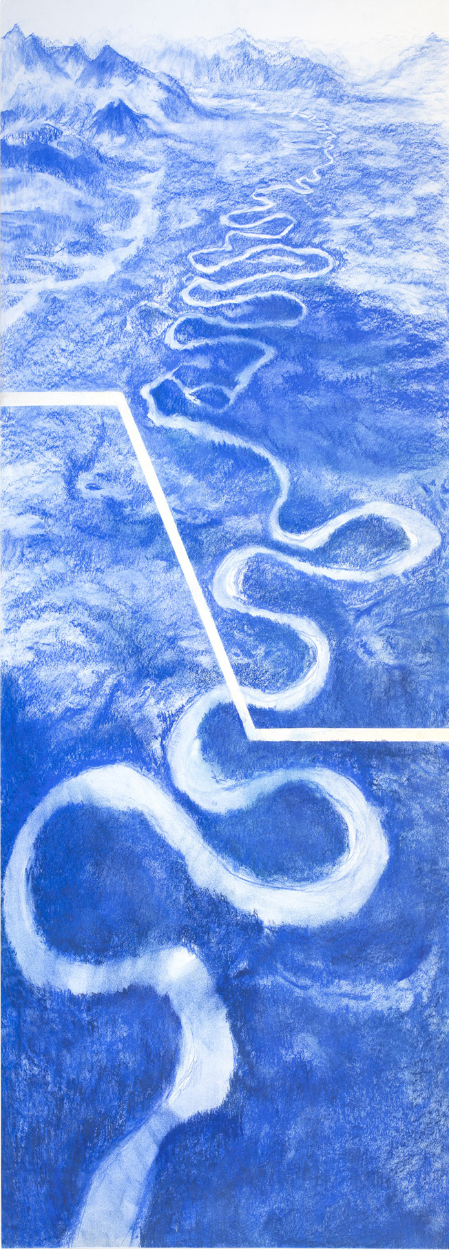 For its part, Danube River and Yucon River, blue (also) is the color regent. As in several of his pieces, Villares once again questions dimensions, takes us out of the zone of visual comfort and stops at its lines, where he gives a different order to each work and with it new interpretations. It forces the eye to focus on minimal details, on spaces in the painting that "pass over" and we do not give the reading it deserves.