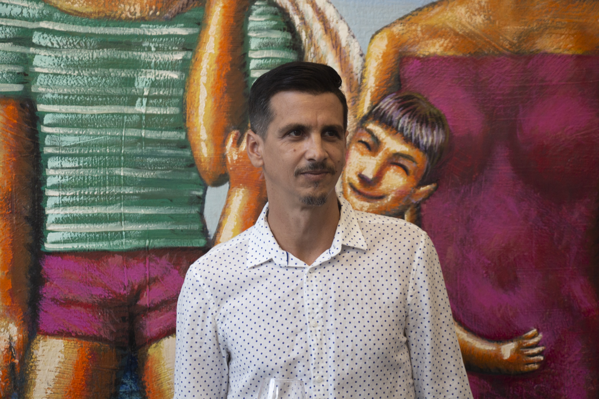 Niels Reyes Cadalso en la apartura de su exposición personal "Regreso a ninguna parte".